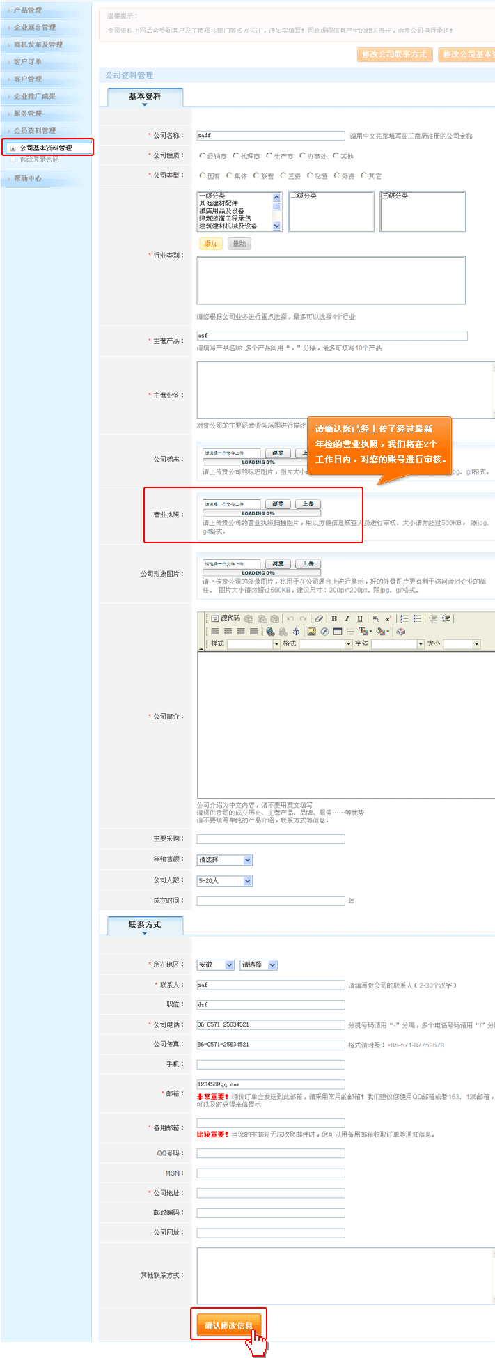 第二步:发布公司信息